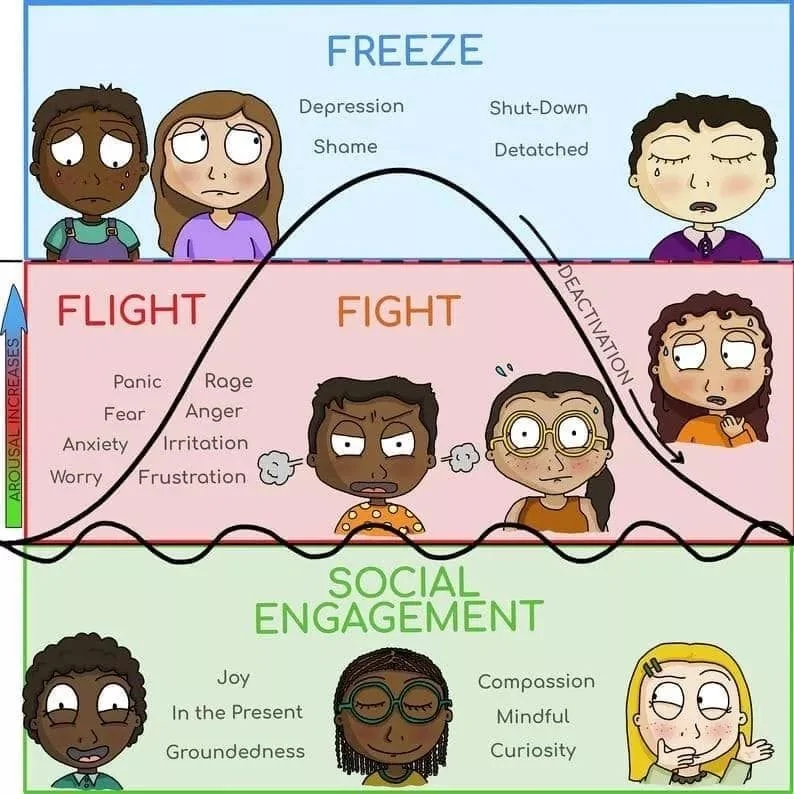 Notice how the single wave in the graphic doesn’t actually dip back down to the Social Engagement Zone. That’s because in order to truly reconnect to that zone a person must confront and deal with the event that caused that big arousal. Once we are safe, we need to go through what happened and acknowledge our response (whether good or bad) and know that we were limited in those moments during the heightened state of arousal for a good reason. We need to accept what happened and reinforce our belief that our brain and body knows how to keep us safe. There may even be other layers that factor in, like if the trauma was caused by another person there may need to be a healing of the harm that was done (whether intentional or not). Sometimes we don’t have the option to heal with that other person, but the healing still has to occur. Our bodies can re-establish our vital signs enough and maybe our brains can help us ‘try to forget’ what happened, but that isn’t actually dealing with, rationalizing, or healing the experience.